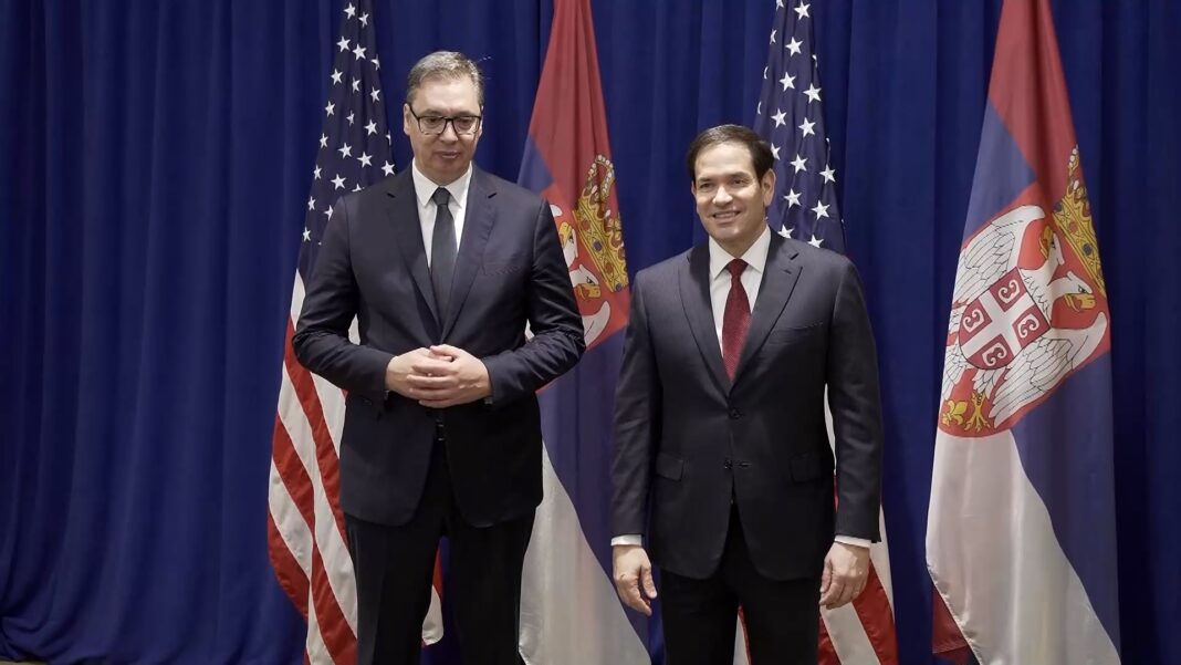 Predsednik Srbije Aleksandar Vučić sastao se sa državnim sekretarom SAD Marcom Rubiom, tokom posete Njujorku na 80. zasedanju Generalne skupštine Ujedinjenih nacija.