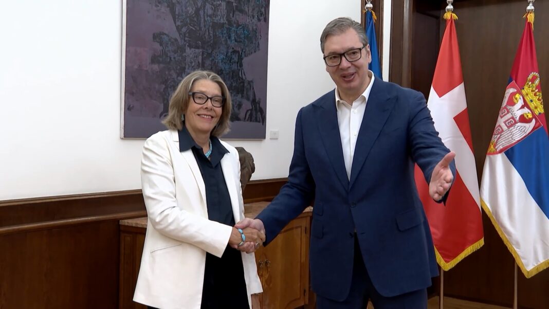 Predsednik Srbije Aleksandar Vučić sastao se danas sa ambasadorkom Danske u Beogradu Pernil Daler Kardel, sa kojom je razgovarao o daljem jačanju bilateralnih i ekonomskih odnosa dve zemlje i predstojećem Samitu Evropske političke zajednice u Kopenhagenu.