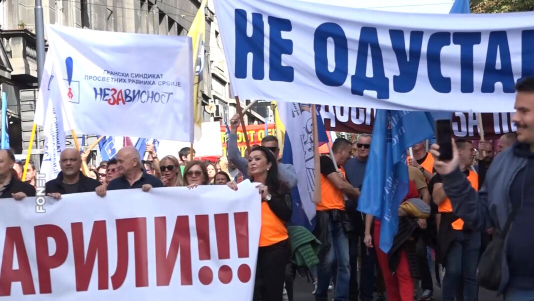 Protest „Snaga kolektiva, sloboda izbora“ počinje u 16.00, kod kružnog toka Ušće. Razlog za protest, pored ostalog, su i diskriminatorne odredbe za jubilarne nagrade i otpremnine i disciplinski postupci protiv zaposlenih i nezakoniti otkazi. Prosvetni radnici će protestovati i protiv razaranje škola, razrešenja direktora koji nisu vršili represiju prema kolegama i učenicima i imenovanjem nekompetentnih vršioca dužnosti direktora.