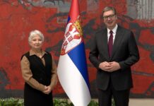 Ministra Gašića dočekao je iguman Hilandara arhimandrit Metodije sa bratstvom manastira.