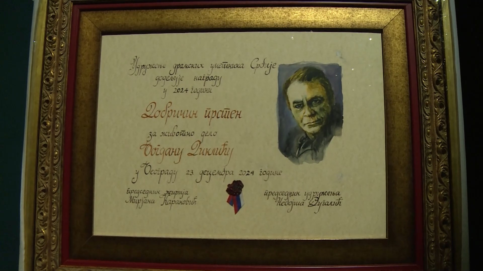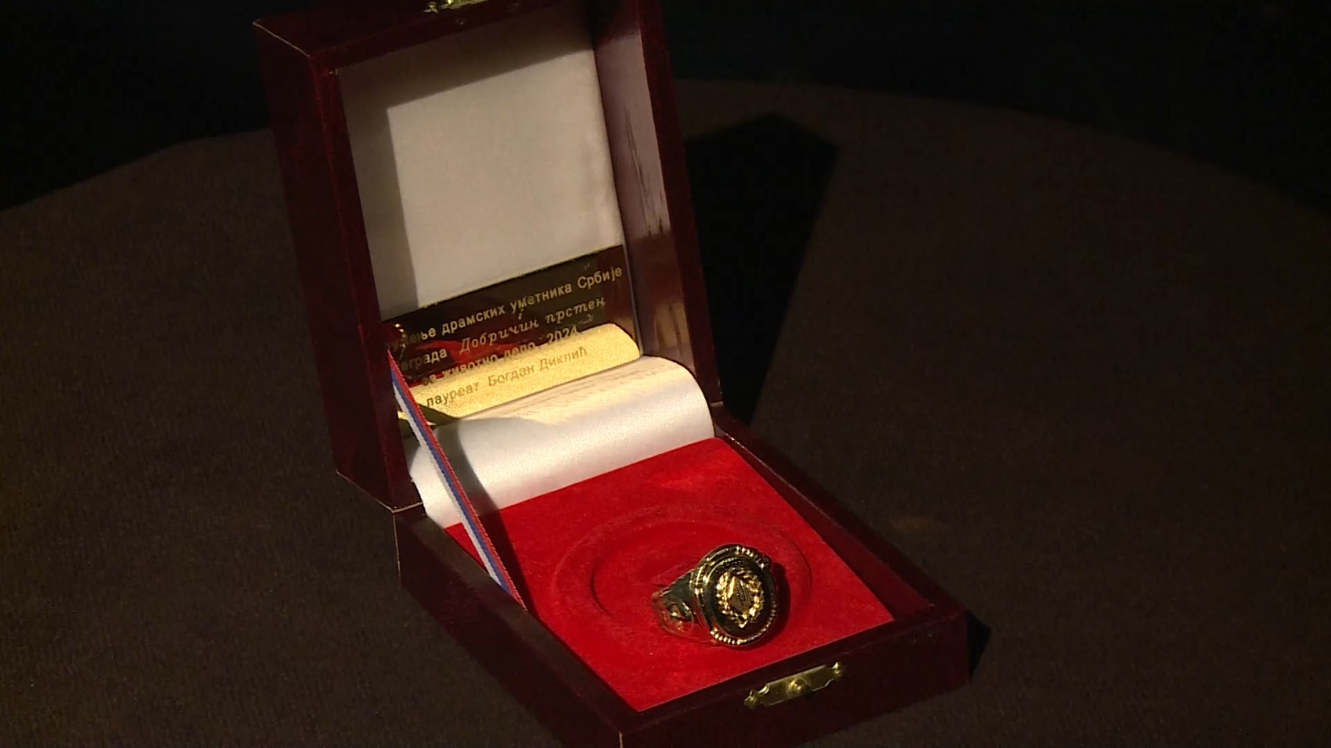 Glumcu Bogdanu Dikliću uručena je Nagrada za životno delo „Dobričin prsten“ za 2024. godinu na svečanosti u Jugoslovenskom dramskom pozorištu (JDP).