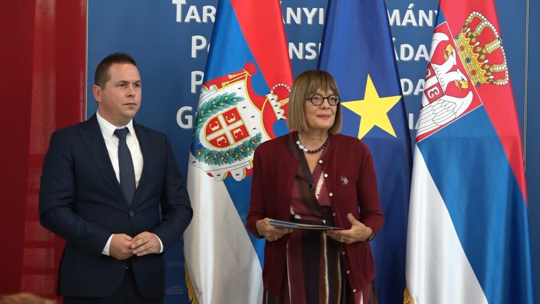 Predsednica Pokrajinske vlade Maja Gojković uručila je danas ugovore u vrednosti od 100 miliona dinara za rekonstrukciju, adaptaciju, sanaciju, investiciono i tekuće održavanje objekata 20 ustanova osnovnog obrazovanja i vaspitanja u AP Vojvodini za 2025. godinu.