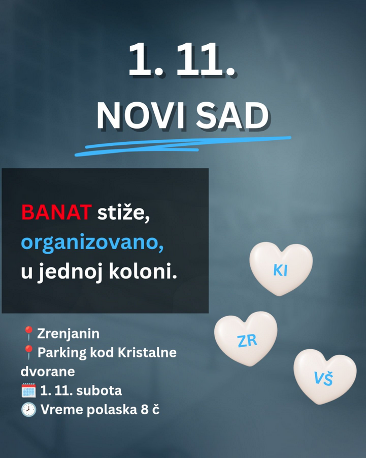 U subotu 1. 11. 2025. tri banatska grada, Vršac, Kikinda i Zrenjanin, okupljaju se u Zrenjaninu i kreću zajedno kao jedan na komemorativni skup u Novom Sadu.