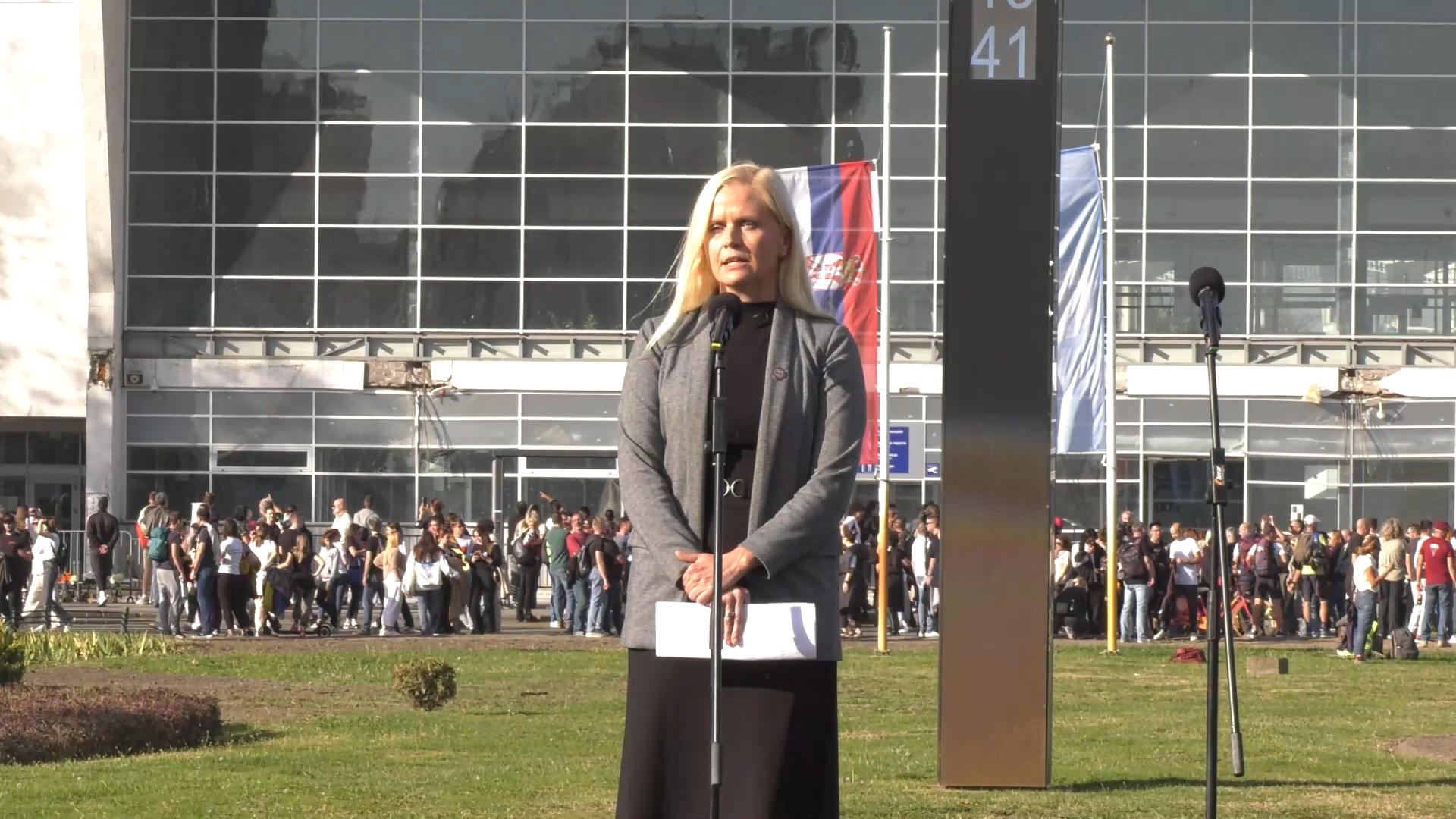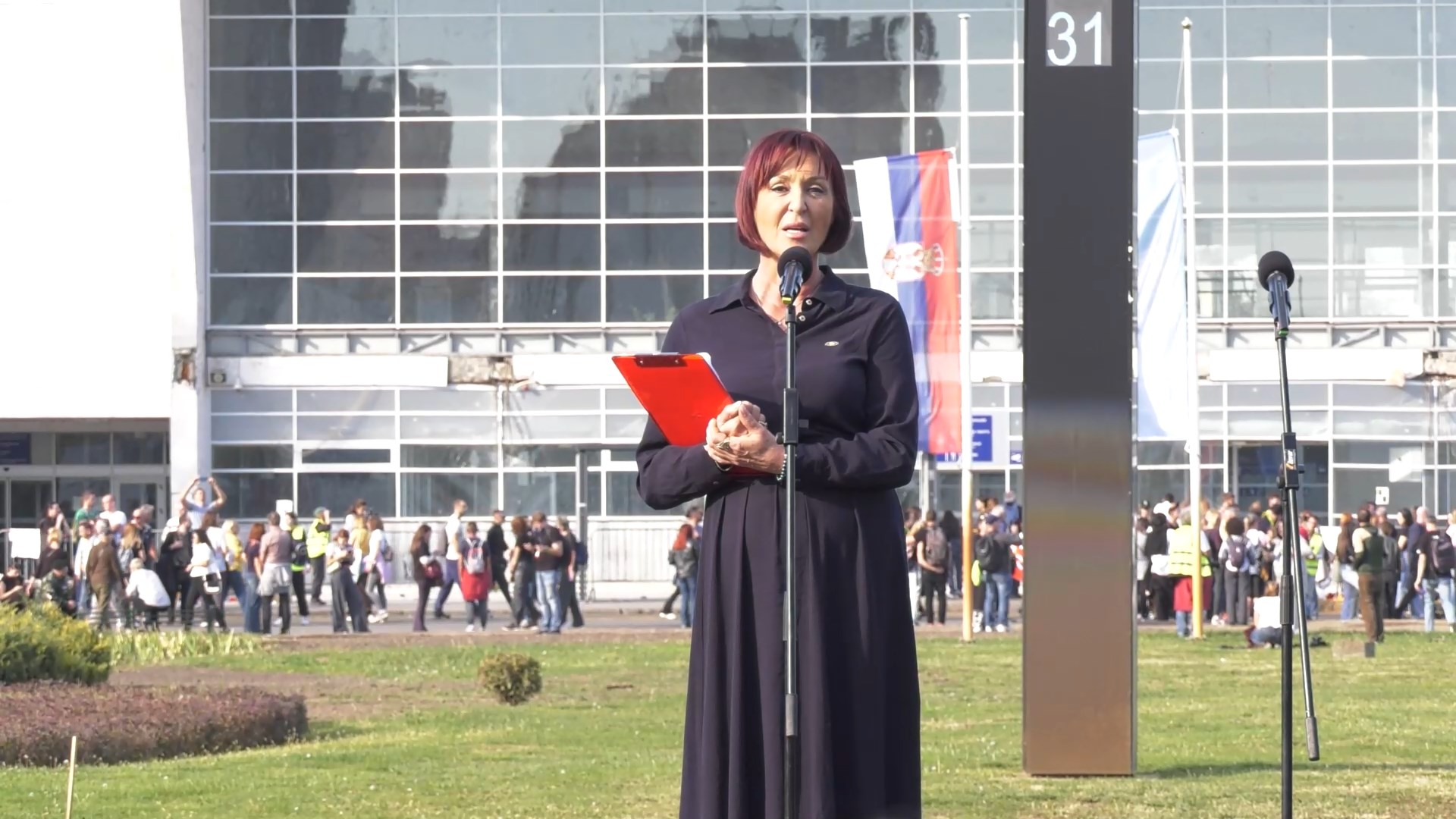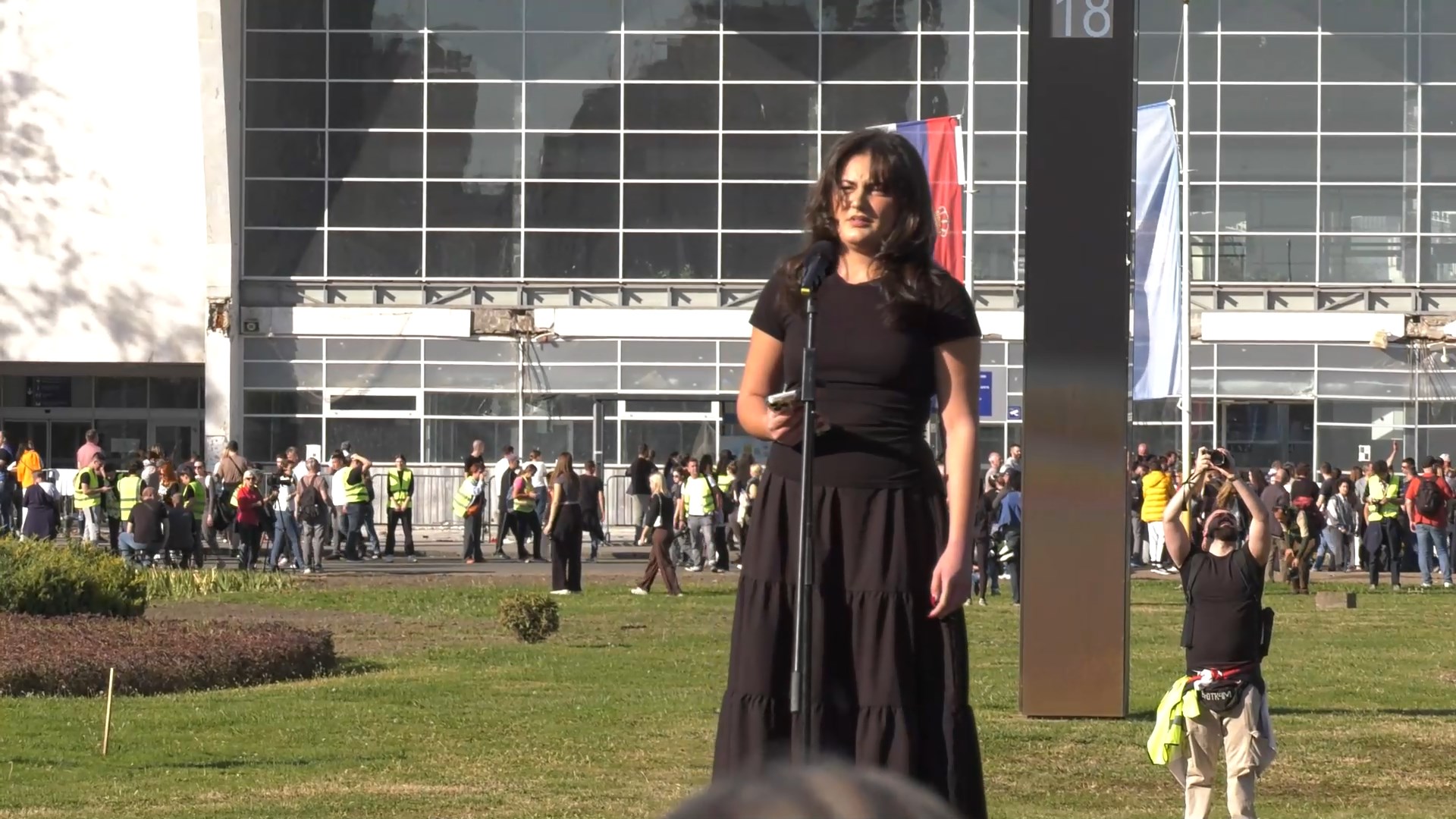 Na komemorativnom skupu obratila se studentkinja Nađa Šolaja sa Filozofskog fakulteta, koja je poručila da godinu dana od pada nadstrešnice imamo „16 žrtava, nula odgovornih i istu poruku – ruke su im krvave“.