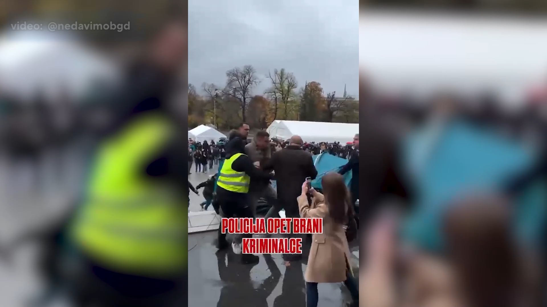 Aleksić je naveo da su okupljeni u šatorskom naselju vređali poslanike, polivali ih vodom i sokovima, a da su neki od poslanika dobili i udarce, navodeći primer poslanika NPS Borislava Novakovića koji je udaren na stepenicama Skupštine.