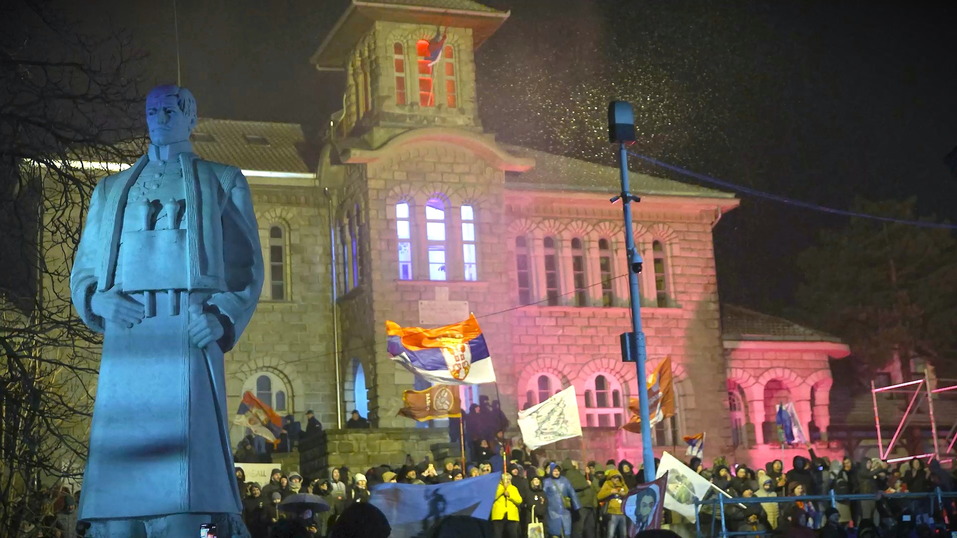Bivši košarkaški reprezentativac Srbije Vladimir Štimac izjavio je da je prvi put na protestu od ukidanja „nezakonitih i sramnih mera“ zabrane prisustva javnim okupljanjima. „Mislili su da će nas zidovima i zabranama razdvojiti. Nisu znali da se ideja slobode ne može pritvoriti“, kazao je Štimac. Ocenio je da su pokušali da ih podele i posvađaju, ali da je studentski pokret je odgovorio jednistvom i istom željom za pravdom i istinom.