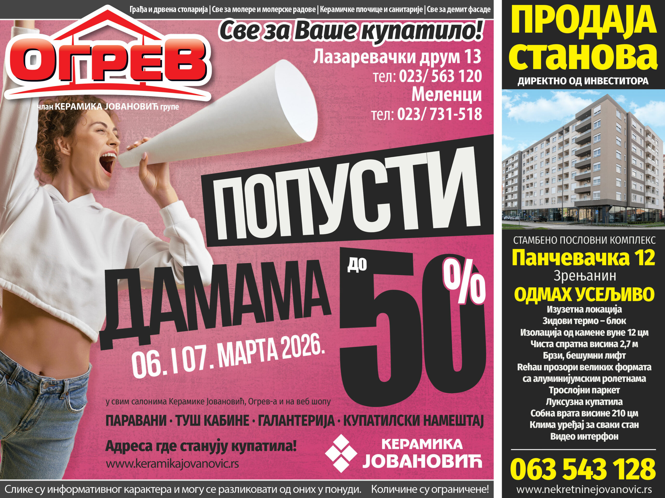 U susret 8. martu Ogrev je za sve dame pripremio specijalnu akciju – do 50% popusta na paravane, tuš kabine, galanteriju i kupatilski nameštaj. Dame, poklonite sebi novo kupatilo za Dan žena. Iz Ogreva poručuju: “Ne propustite priliku da uštedite dok stvaramo lepši dom zajedno. Posetite nas i pronađite savršen proizvod po još savršenijoj ceni”.
