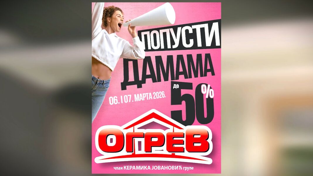 U susret 8. martu Ogrev je za sve dame pripremio specijalnu akciju – do 50% popusta na paravane, tuš kabine, galanteriju i kupatilski nameštaj. Dame, poklonite sebi novo kupatilo za Dan žena. Iz Ogreva poručuju: “Ne propustite priliku da uštedite dok stvaramo lepši dom zajedno. Posetite nas i pronađite savršen proizvod po još savršenijoj ceni”.