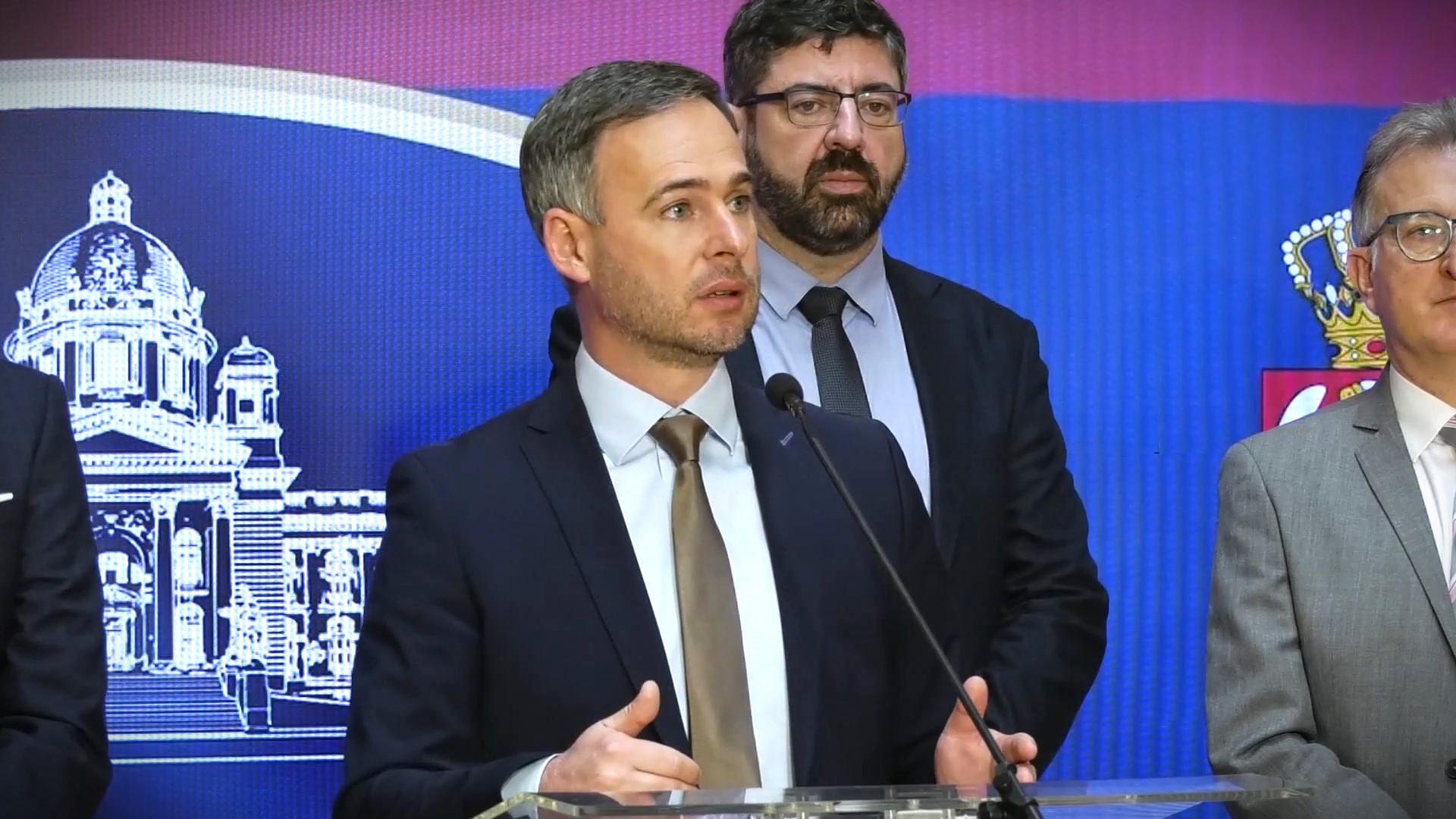 Kopredsednik Zeleno-levog fronta Radomir Lazović je na konferenciji za novinare u holu Skupštine Srbije podsetio na to da je grupa opozicionih stranaka podnela zvaničan zahtev da se Mrdićevi zakoni stave van snage.