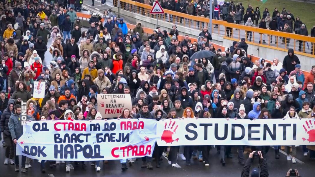 Studenti u blokadi Pravnog fakulteta Univerziteta u Beogradu saopštili su danas da su podneli krivičnu prijavu protiv ministra informisanja i telekomunikacija Borisa Bratine i ministra za javna ulaganja Darka Glišića.